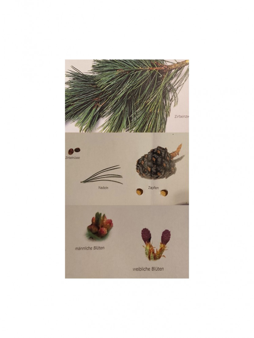 Die Zirbe kommt an der Waldgrenze vor. Wie kein anderer Baum trotzt sie dem rauen Klima des Hochgebirges und hält Fröste unter minus 40° C aus. Das Holz ist wertvoll und für Möbel, Täfelungen und Schnitzarbeiten sehr gefragt. Die wohltuende Wirkung von Zirbenholz-Möbel auf den Menschen ist wissenschaftlich belegt. Für den Menschen angenehm, beim Ungeziefer aber nicht beliebt, ist der Duft des Zirbenholzes. Er bleibt jahrzehntelang erhalten und vertreibt Motten aus dem Schrank. Die wohlschmeckenden Samen, wegen der harten Schale als Zirbelnüsschen bezeichnet, wurden früher im Alpenraum als wertvolles Nahrungsmittel verwendet. Das Öl der Zirbe wirkt beruhigend und ist heilsam bei Erkältungen.