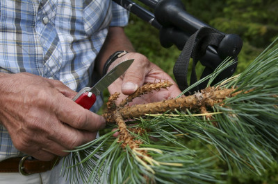 Nadeln: 5 bis 8 cm, spitz, in Büscheln zu je 5 Nadeln