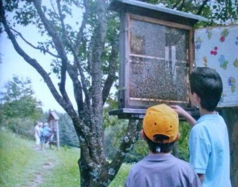 Bienen stechen, na und? Hinter sicherem Glas können die Besucher ein quirliges Knäuel summender Tierchen beobachten. Darunter tummelt sich die Königin, die sich – groß und mit ausgeprägten Hinterleib-deutlich von den Arbeiterbienen unterscheidet. Zur besseren Sichtbar-keit trägt sie am Rücken einen bunten Farbtupfer. Wie wird eigentlich Honig gewonnen? Eine Videovorführung erklärt den Vorgang, dann geht die spannende Führung los. Im Freien stehen Bienenstöcke, in denen richtige Bienenvölker wohnen. Auf dem Rundgang im Freigelände gibt es auf dem Lehrpfad noch einiges zu entdecken, zum Beispiel wie sich die Bienen orientieren, welche Honigpflanzen die anfliegen, wie das Bienenauge sieht und vieles mehr. Wer mag, darf in eine Imkerausrüstung mit der Netzhaube und der Räucherlaterne schlüpfen.
