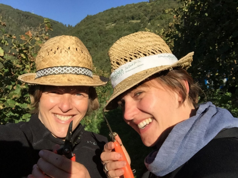 Die beiden „Flachland-Tirolerinnen“ aus dem hohen Norden helfen aber nicht nur beim Wimmen und im Weinkeller. Zum Herbstanfang steht auch die Kartoffelernte an, und die Küche des Buschenschanks verwandelt sich jede Woche einmal in eine kleine Schlutzkrapfen-Fabrik.